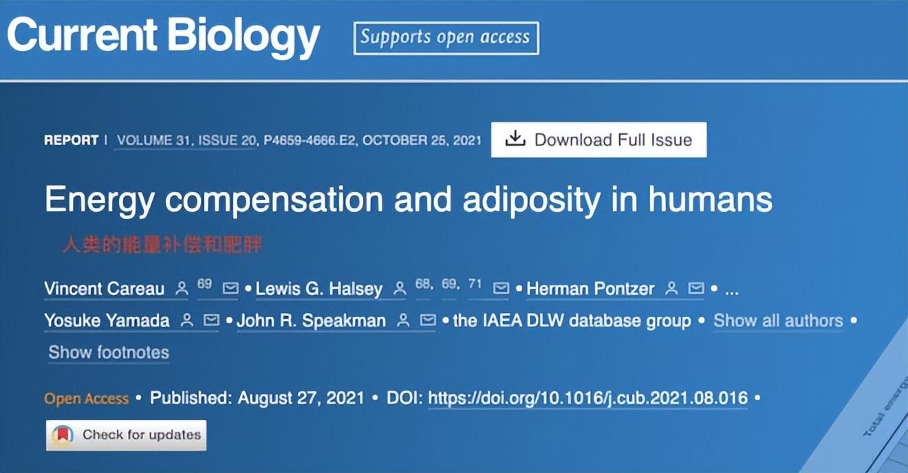 [1]Careau V, Halsey LG, Pontzer H, et al. Energy compensation and adiposity in humans. Curr Biol. 2021;31(20):4659-4666.e2.