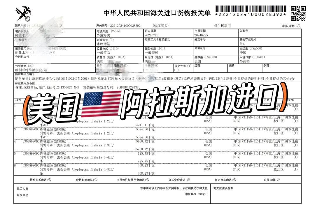 我們這批黑鱈魚生長在阿拉斯加FOA67號海域,產地信息透明,很難造假。