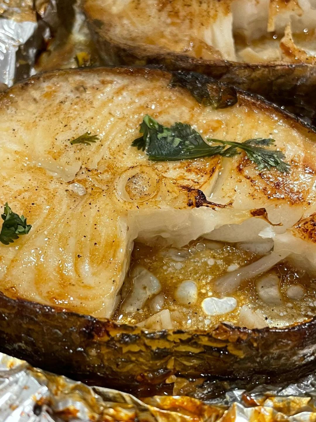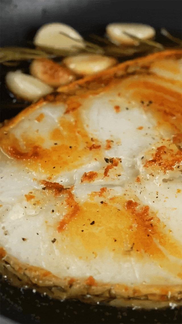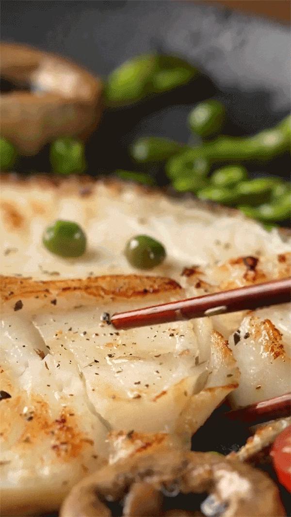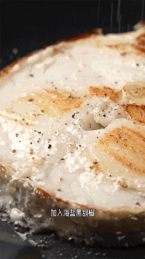 用鹽和黑胡椒醃製後兩面煎熟,肉細嫩緊緻,奶香味濃郁,帶着魚皮口感鮮糯~