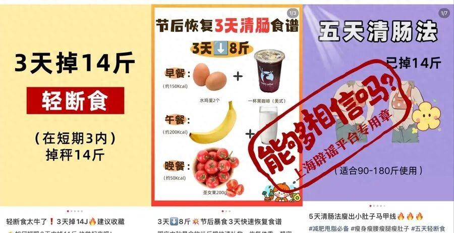 馬年春節長假結束,你稱體重了嗎?不少網友自嘲每逢佳節“胖三斤”。記者觀察發現,各種“速效瘦身法”“急瘦食譜”等近期在社交平臺廣泛傳播。很多帖子稱,“只要三五天,就能迅速減重數千克。”這些減肥方法或食譜,是真的嗎?能照搬使用嗎?