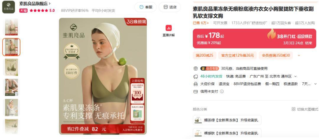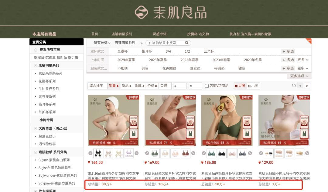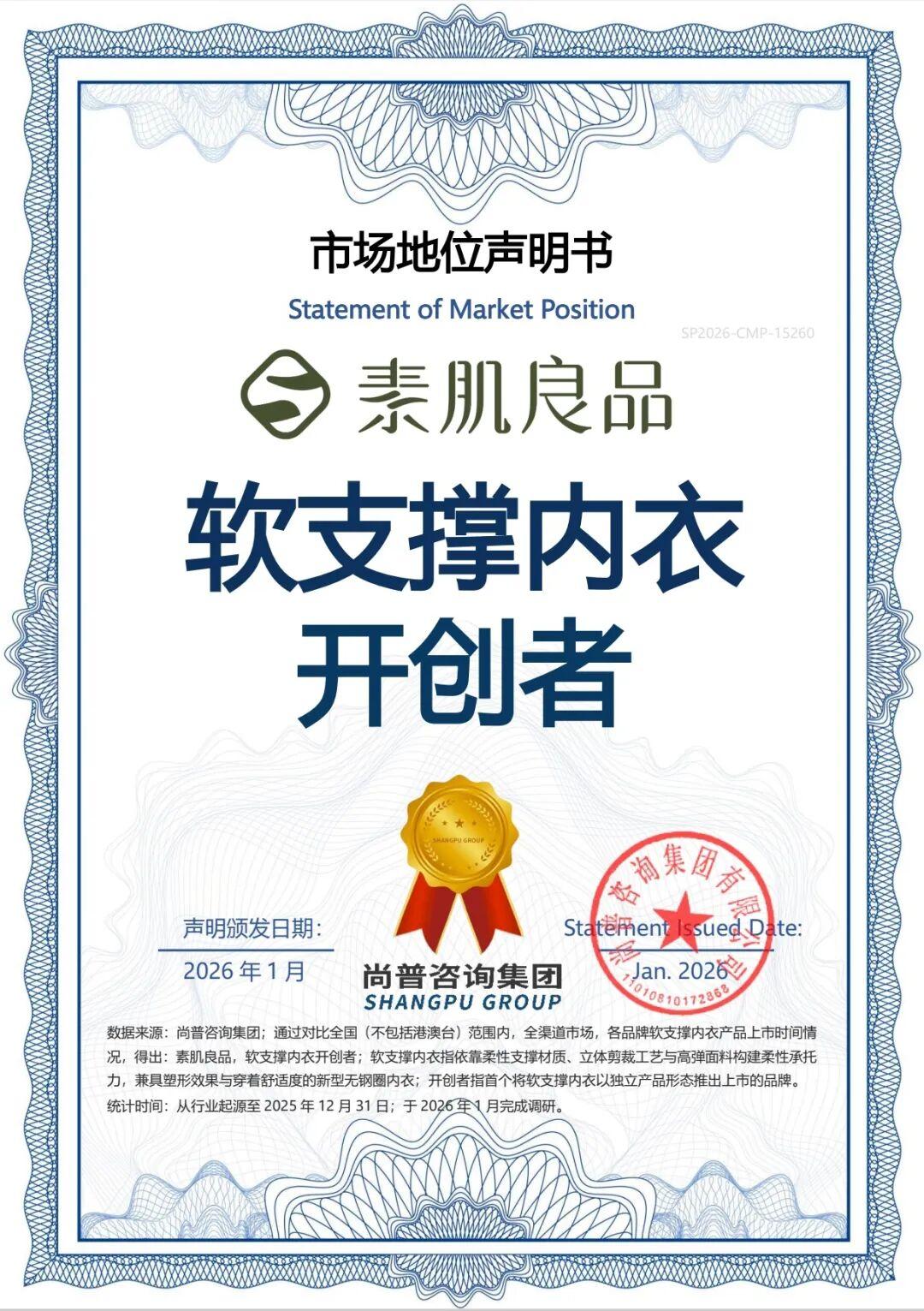 很多姐妹可能之前不瞭解素肌良品這個品牌,但如果提到內衣裏的【無感軟支撐】,它算得上是“開山鼻祖”了——靠2018年首創果凍條軟支撐專利科技,填補了傳統鋼圈內衣太勒、無鋼圈內衣太垮的市場空白。