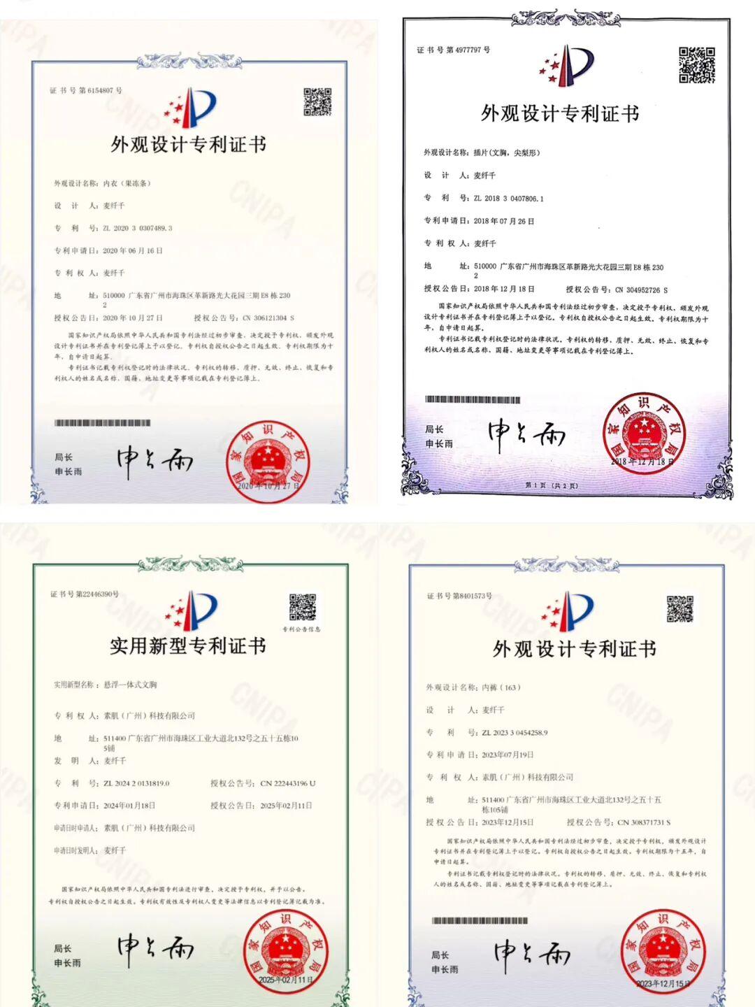 他家研發團隊都是內衣行業裏經驗超足的專家,光專利、知識產權就拿了 400 多項,還是國家認證的高新技術企業、科技型企業。