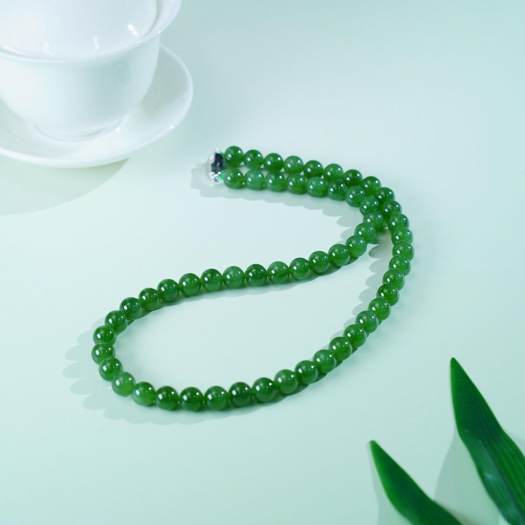 一眼看到它就覺得好經典大氣,自帶耐看氣質,顆顆細膩,玉質油潤性佳。