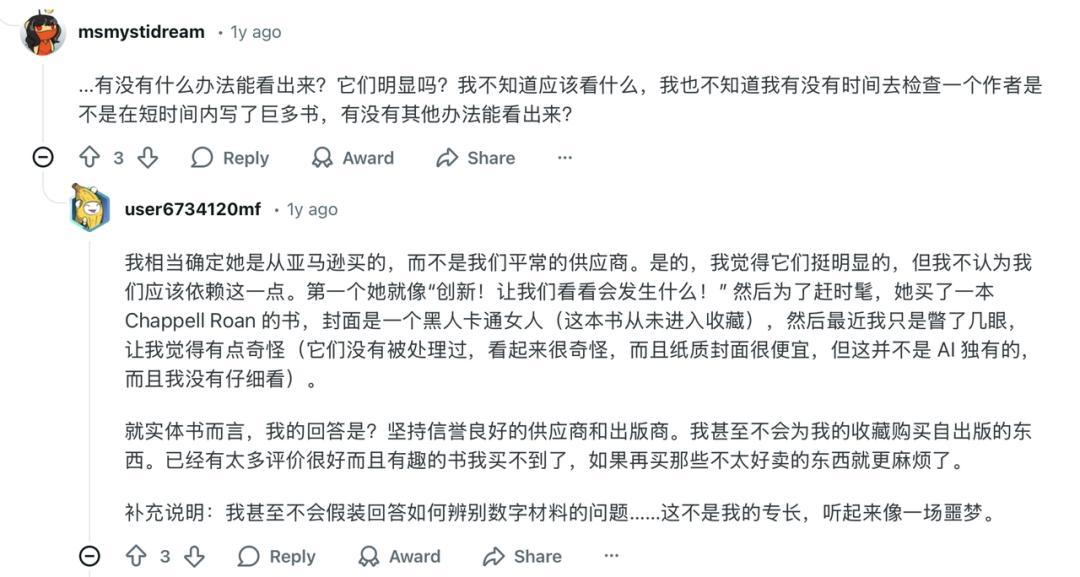 首當其衝的是圖書管理員。他們在 Reddit 和 404 Media 上爆料,他們在後臺看到大量 AI 寫的書,封面詭異、內容空洞。而他們卻對此無能爲力。