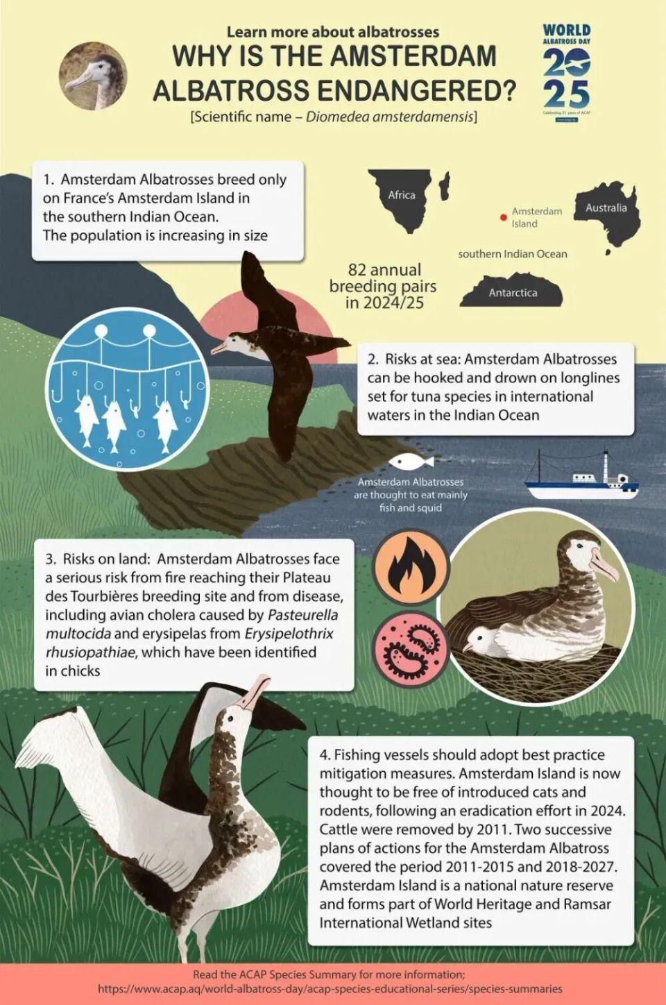 20 世紀 80 年代,當科學家艱難地爬上高原時,發現這種巨大鳥類的繁殖對數已屈指可數,而阿姆底特丹島牛羣卻正向這裏不斷推進,徹底毀掉它們產卵的泥炭層。