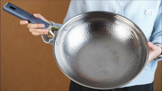 鍋面是純手工捶打,受熱均勻,配合熱鍋涼油的技巧,有效減少粘鍋!