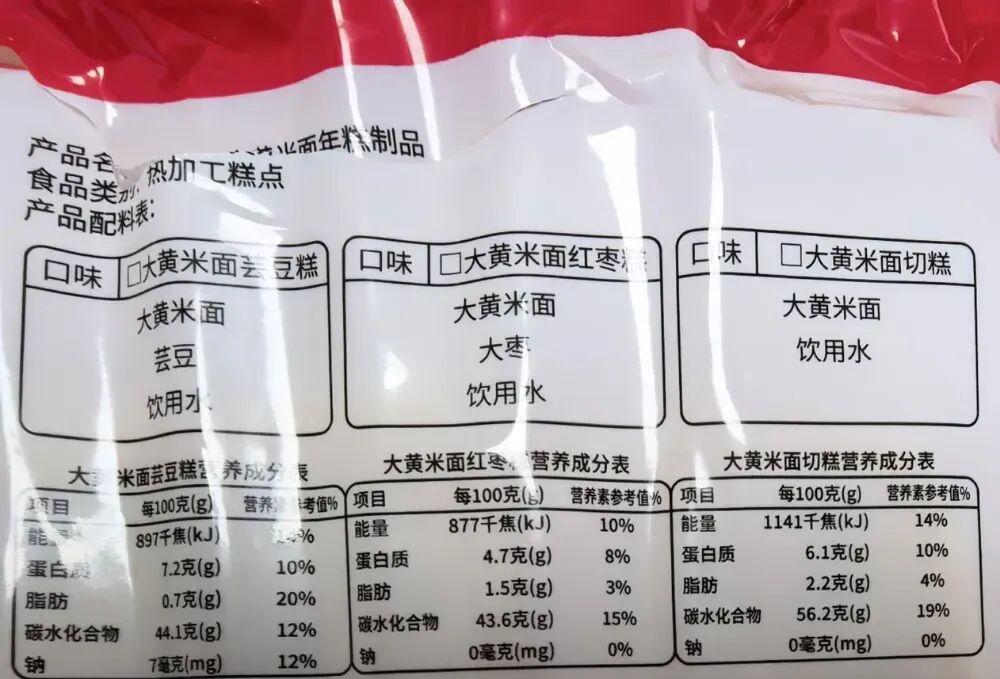 圖:黃糕營養成分表,自己拍的