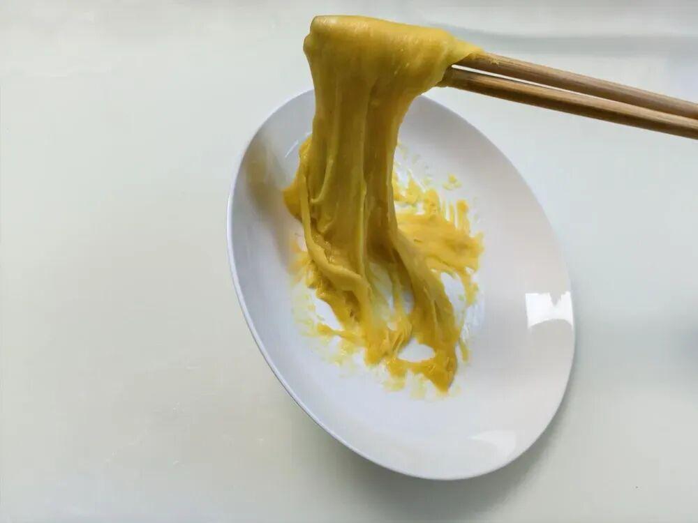 關鍵是,黃糕剛放進嘴裏的時候就很軟,如果反覆咀嚼,在嘴裏不停地攪動,會被拉扯成更細的膠團,黏附面積變大,就更容易有“黏牙、黏上顎、吞不下去”的感覺。