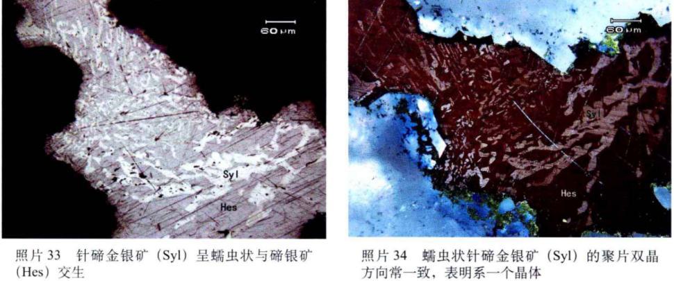 蠕蟲狀針碲金銀礦丨盧靜文等《金屬礦物顯微鏡鑑定手冊》