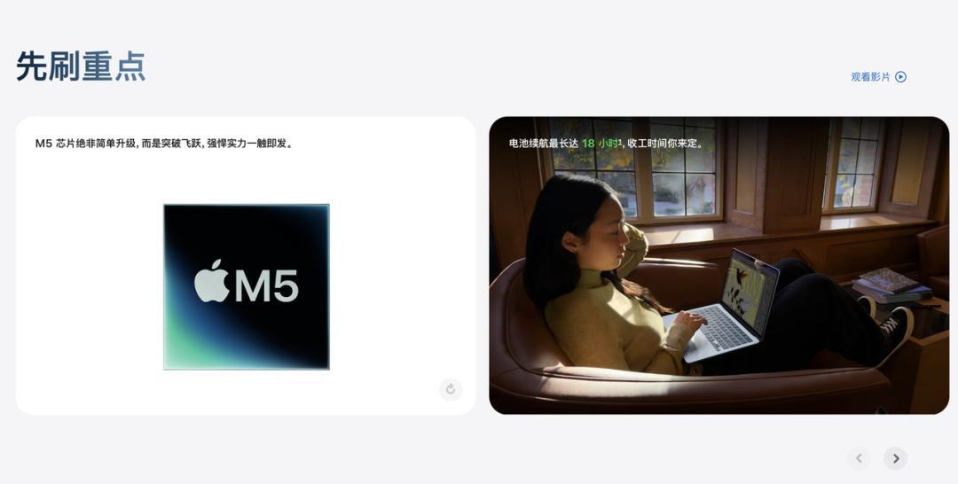比起看配置亮點,看 M4 和 M5 發佈時的官網宣傳頁反而更有意思,從 2024 年的 M4 到 2026 年的 M5,蘋果的“度量衡”變了。