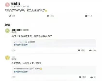 比如前段時間有位阿里員工在網上感慨年終獎居然交了8w的稅、很不划算,結果不僅被批“凡爾賽”,還引發了大家對互聯網行業的種種敵意。