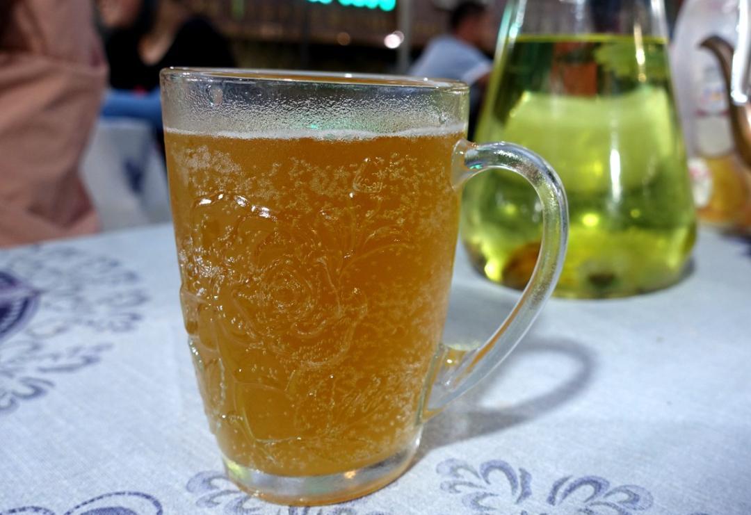 理論上,燒烤的全國官配都是啤酒,新疆也有出圈的“奪命大烏蘇”。但你如果真的有機會在新疆喫,那一定不要錯過本地特產冰鎮格瓦斯。新疆夜市的格瓦斯,一般由少數民族攤主自行製作,放在普通的扎啤杯中看起來和啤酒無異,聞起來帶着淡淡啤酒味。
