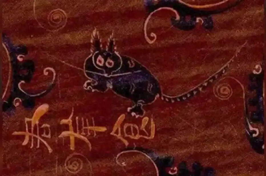 馬王堆一號漢墓中的貓紋漆食盤上的貓形象(該狸貓紋漆食盤現藏於湖南博物院) | 參考文獻[1]