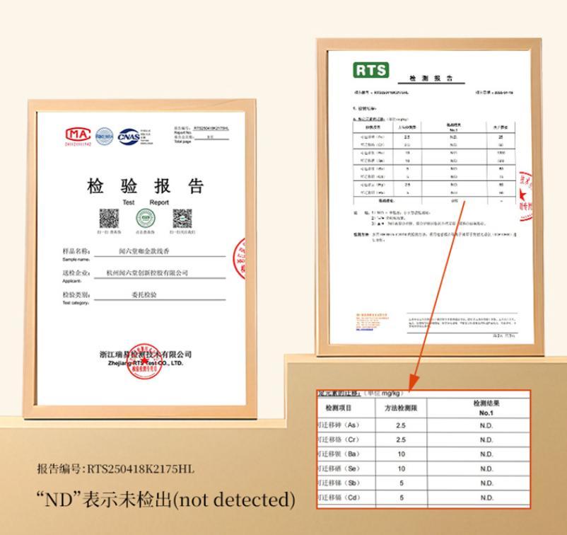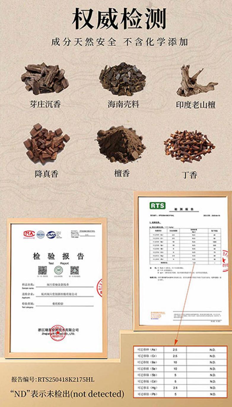 選香就要選放心的!聞六堂口碑好,配方乾淨,有嚴格的質檢報告,用料紮實,每一支香能燃燒近30分鐘,當你拿到手裏,每一支香的品質是肉眼可見的放心!