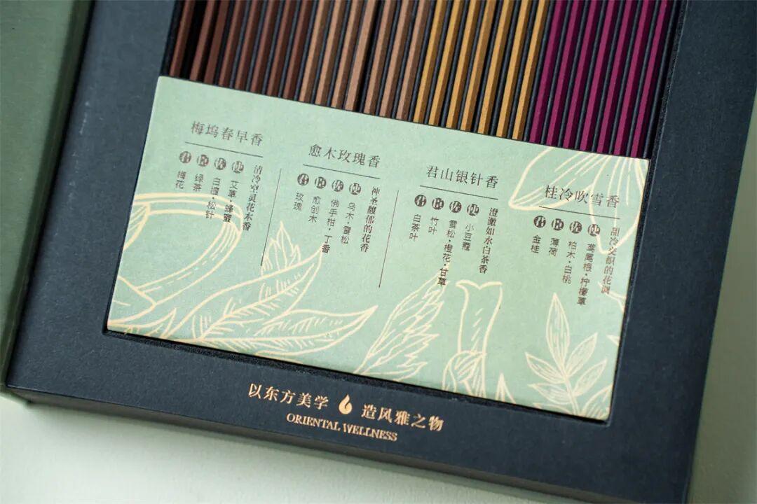 每一款茶香禮盒裏都有四種香味的線香,每支香都堅持採用天然植物配料,拒絕任何香精、粘合劑,只給你溫和淡雅的天然香氣。