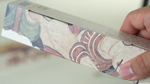 很心細的是,包裝上的壁畫盡力做到了1:1實還原,壁畫缺損的部分也復刻上,真實的讓我有種身臨敦煌之感。