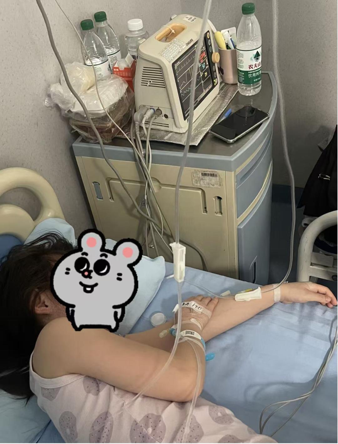 到了大醫院,發熱門診醫生也沒能找到明確的感染部位,因爲她三天內除了一次嘔吐,沒有其他任何症狀。感染部位不明確,加上CRP這麼高,醫生說需要住院,便聯繫感染科收治了我們,當下就給輸上了更強力的抗生素。