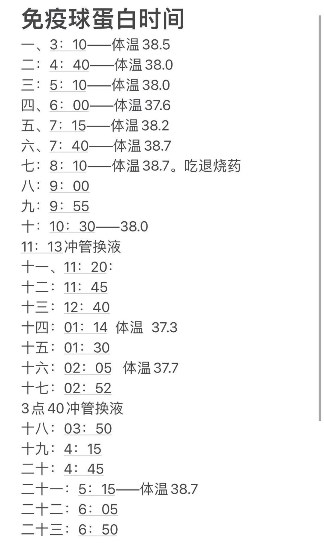 丙球需要不間斷地一次性輸完。按照小鈴鐺的體重,醫生測算需要23支,每一支需要三四十分鐘輸完,過程中還需要每四個小時換一次輸血管。於是我跟爸爸分好了班,一人前半夜,一人後半夜。整個過程用時十五個小時,直到第二天上午。