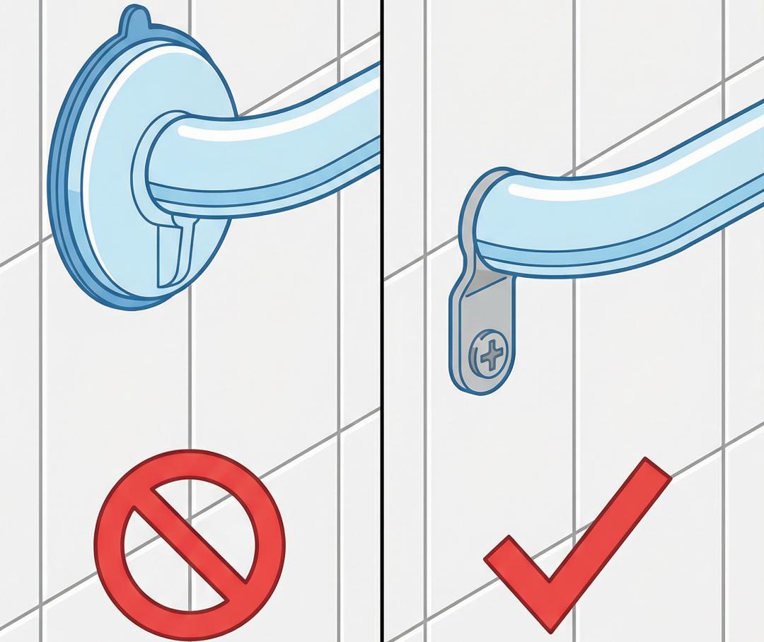 特別強調:浴室、廁所牆面瓷磚多有縫隙或紋理,加上長期水汽浸泡,導致吸盤式扶手很容易脫落。禁止使用吸盤,必選打孔安裝!