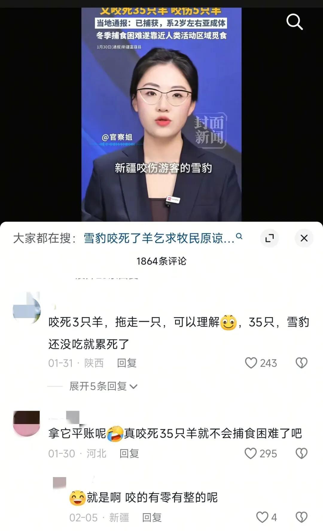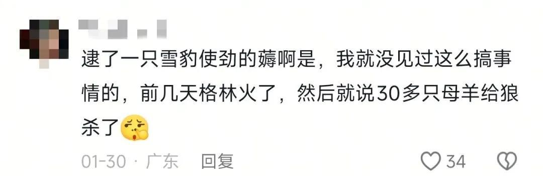 然而,在雪豹殺羊的新聞報道後,大量網友提出質疑,認爲該報道過於誇張,甚至有人覺得這是人爲事件,卻讓雪豹背鍋,用雪豹平賬。