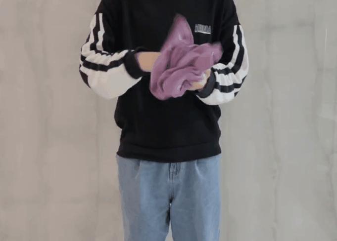 小哥模擬大家下班回家隨手脫衣服就扔一團的動作,看起來也沒什麼褶子。
