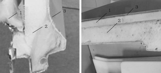 冰箱門體 1—真空絕熱板;2—門體發泡層;3—門體外殼 圖源:參考文獻[3]