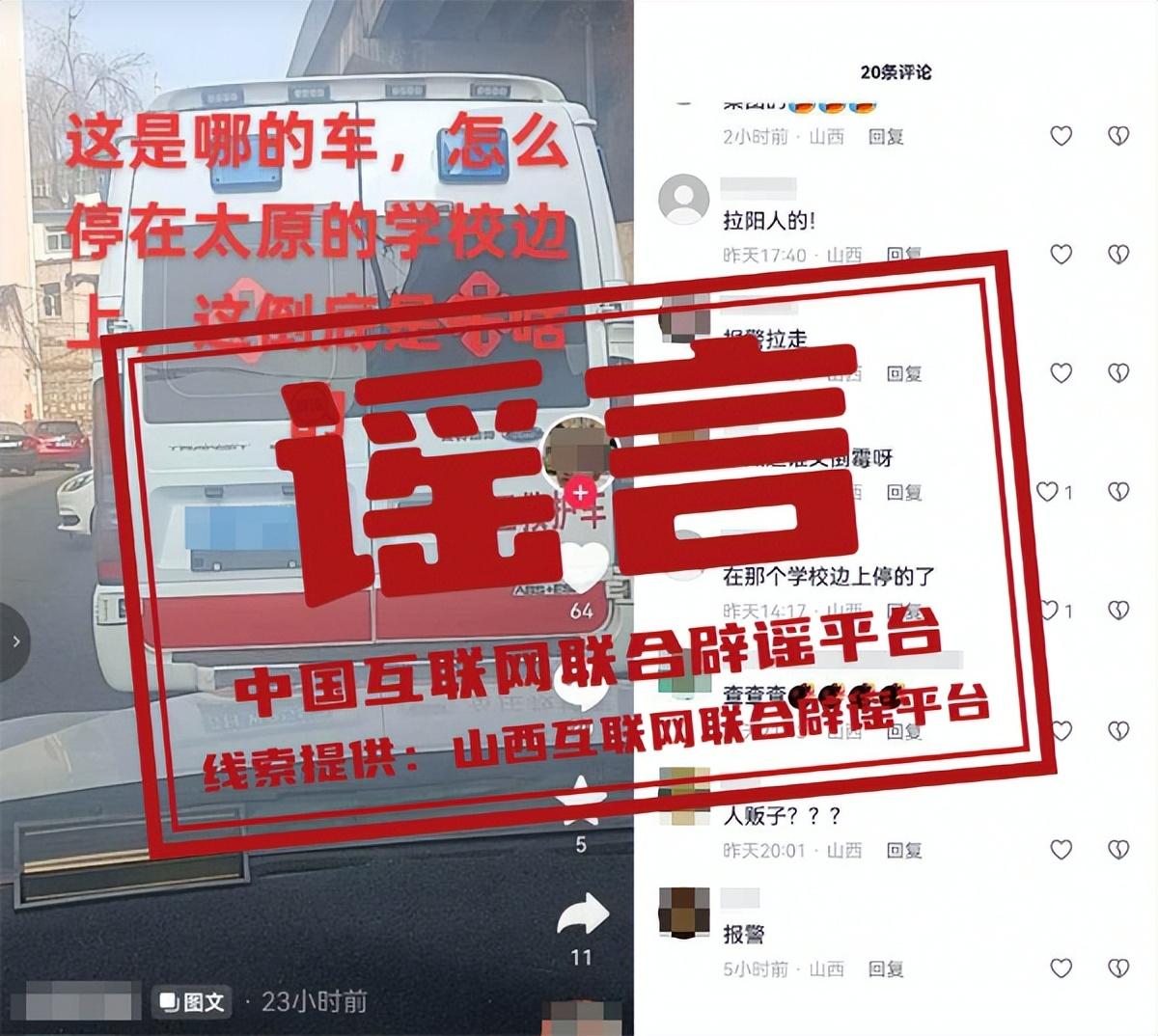 闢 謠 “異地救護車在太原拐賣兒童”系謠言