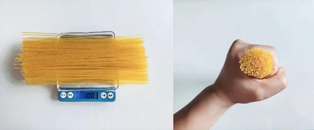 圖:1把幹玉米麪條約 100 克(直徑約 1 元硬幣大小),自己拍的