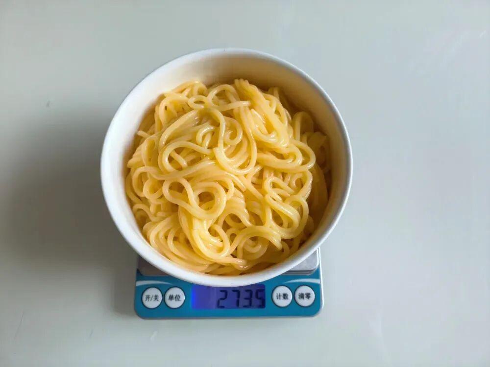 圖:100 克幹玉米麪條煮熟後約 270 克,自己煮的+自己拍的