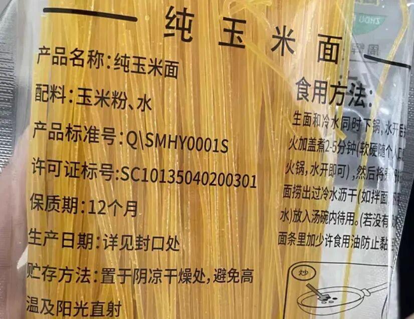 如果是自己購買玉米麪條,最好選配料表只有玉米粉+飲用水的產品。