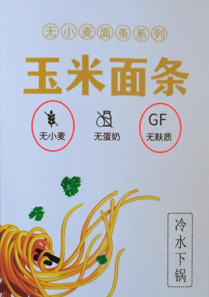 對於一般人羣,直接買純玉米麪條就行;但對需要無麩質飲食的人羣來說,就不能只選純玉米麪條了,同時還要看包裝上是否有相應的說明,選擇包裝上明確標註了“GF(無麩質)”或帶有“小麥劃斜槓(無小麥)”通用標誌的產品。