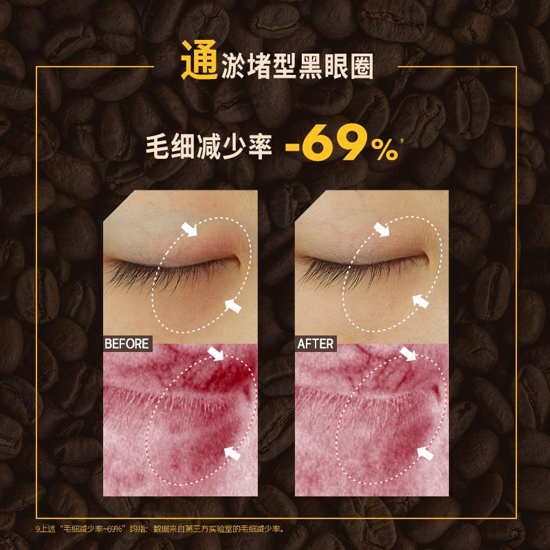 咖啡因+七葉樹皁苷,可提升眼周循環速度,更快疏解熬夜後的泡泡眼和青黑色沉。