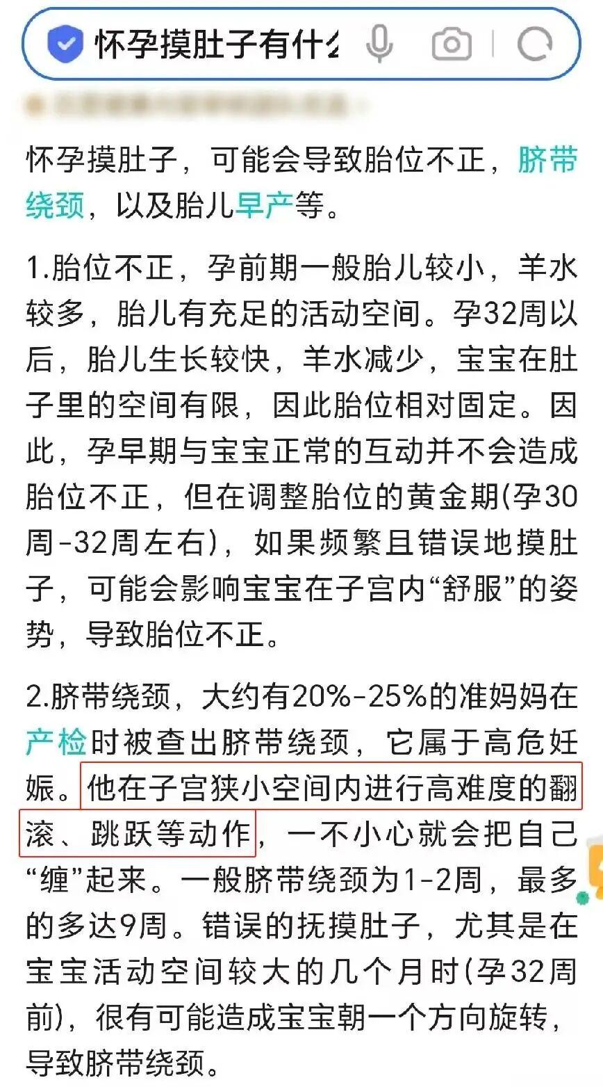 網上有很多人說:“孕媽媽們不要摸肚子,會導致臍帶繞頸。”