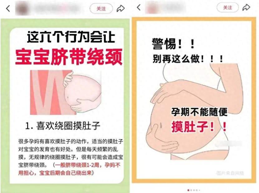 社交媒體上,不少母嬰博主告誡孕媽媽們不要摸肚子,聲稱會導致臍帶繞頸。