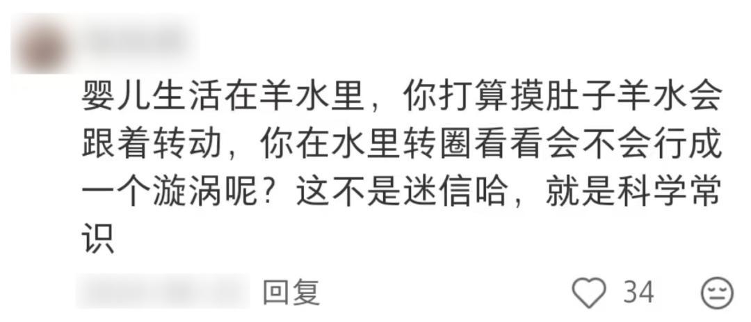 還有網友表示摸肚子會讓寶寶在裏面轉圈圈,甚至有網友貼出了“專家”的解釋: