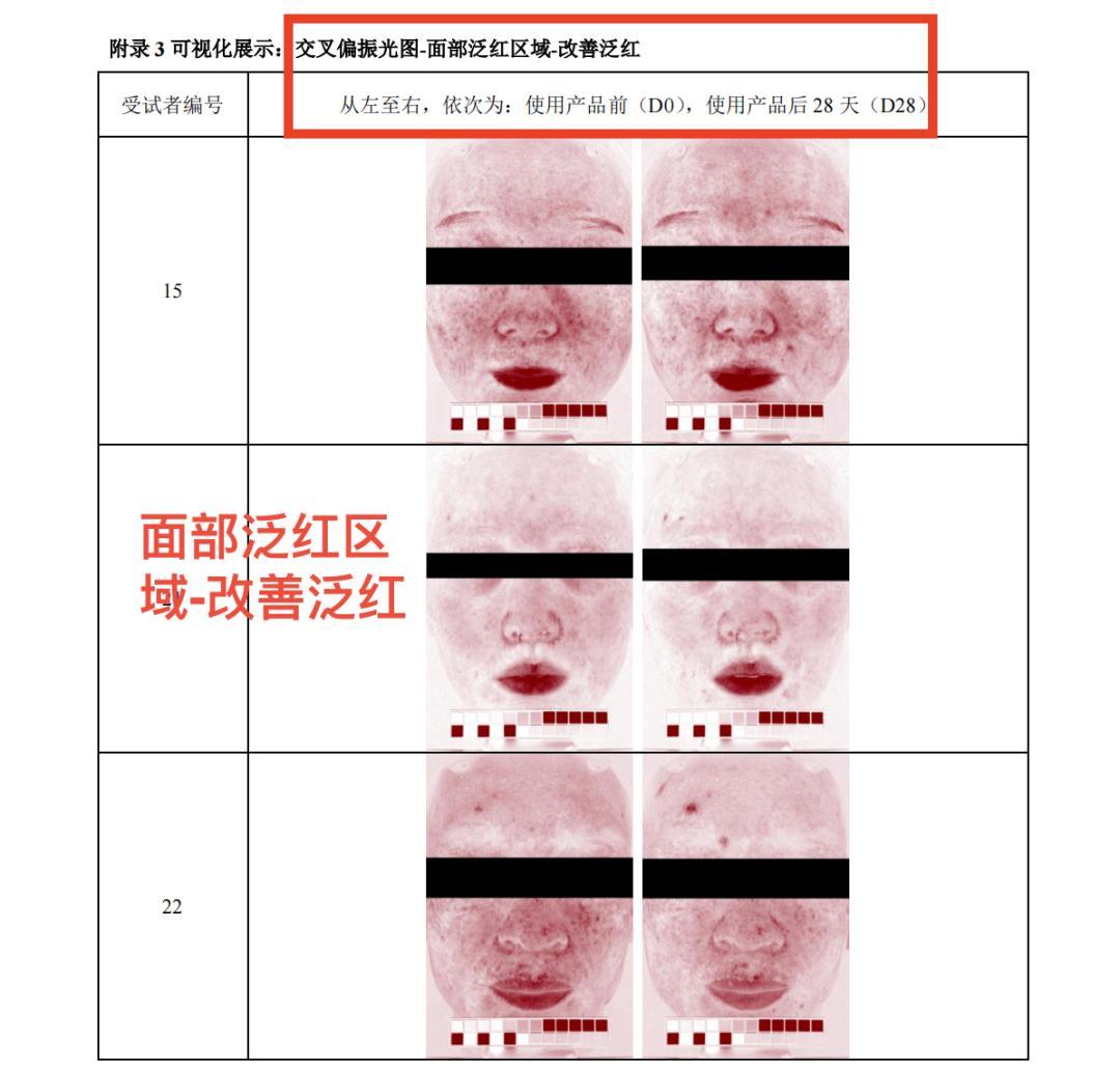 附:真人測試可視化展示——使用28天后可以減少面部紅區