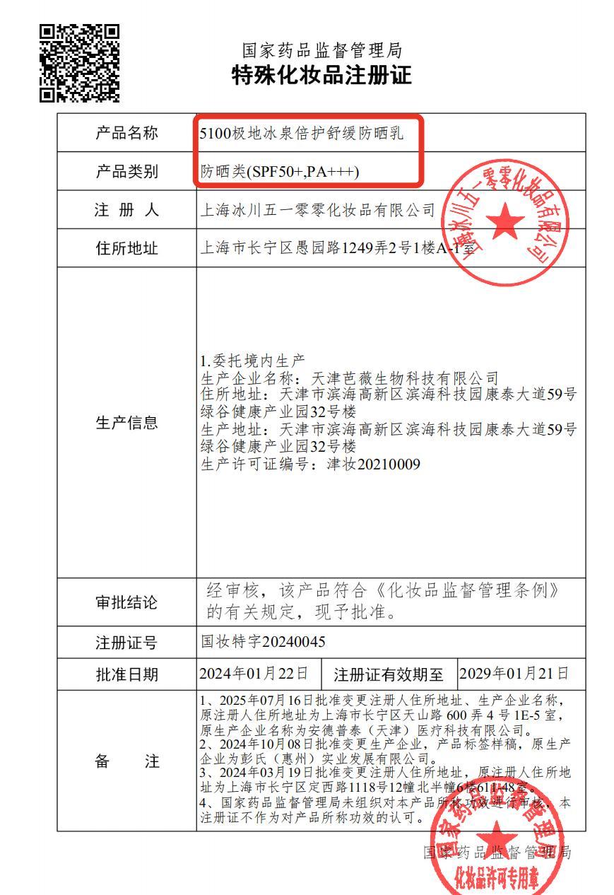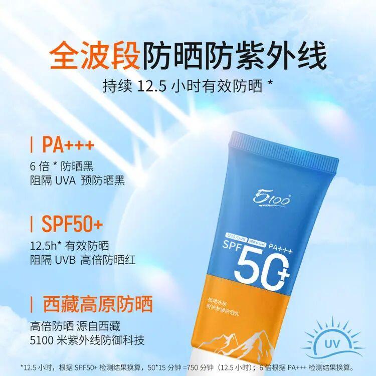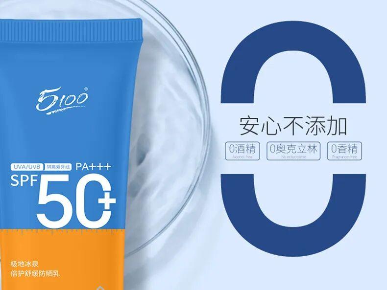 5100極地冰泉防曬乳SPF50+,PA+++,而且做到了全波段防曬。