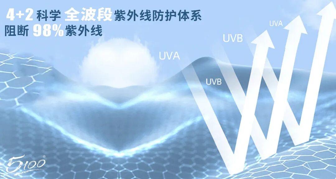 之所以這麼牛,是因爲5100防曬乳成分中添加了6重防曬劑,對應光中不同的波段: