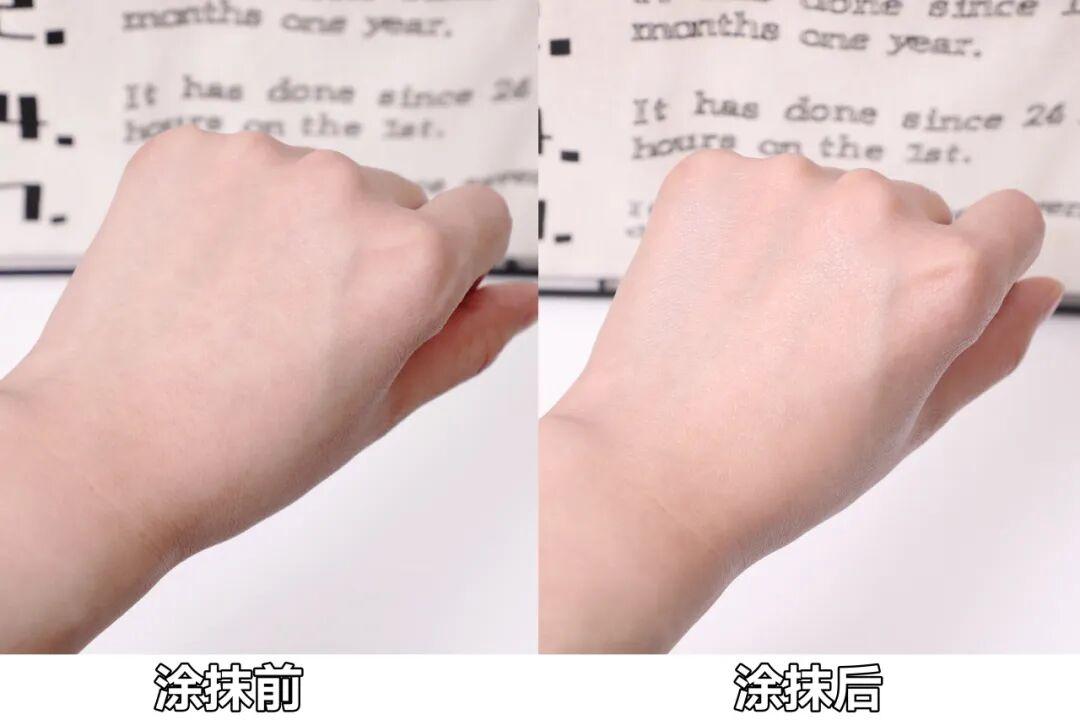 塗抹後的膚色看起來更透亮了,一點也不油膩反光!