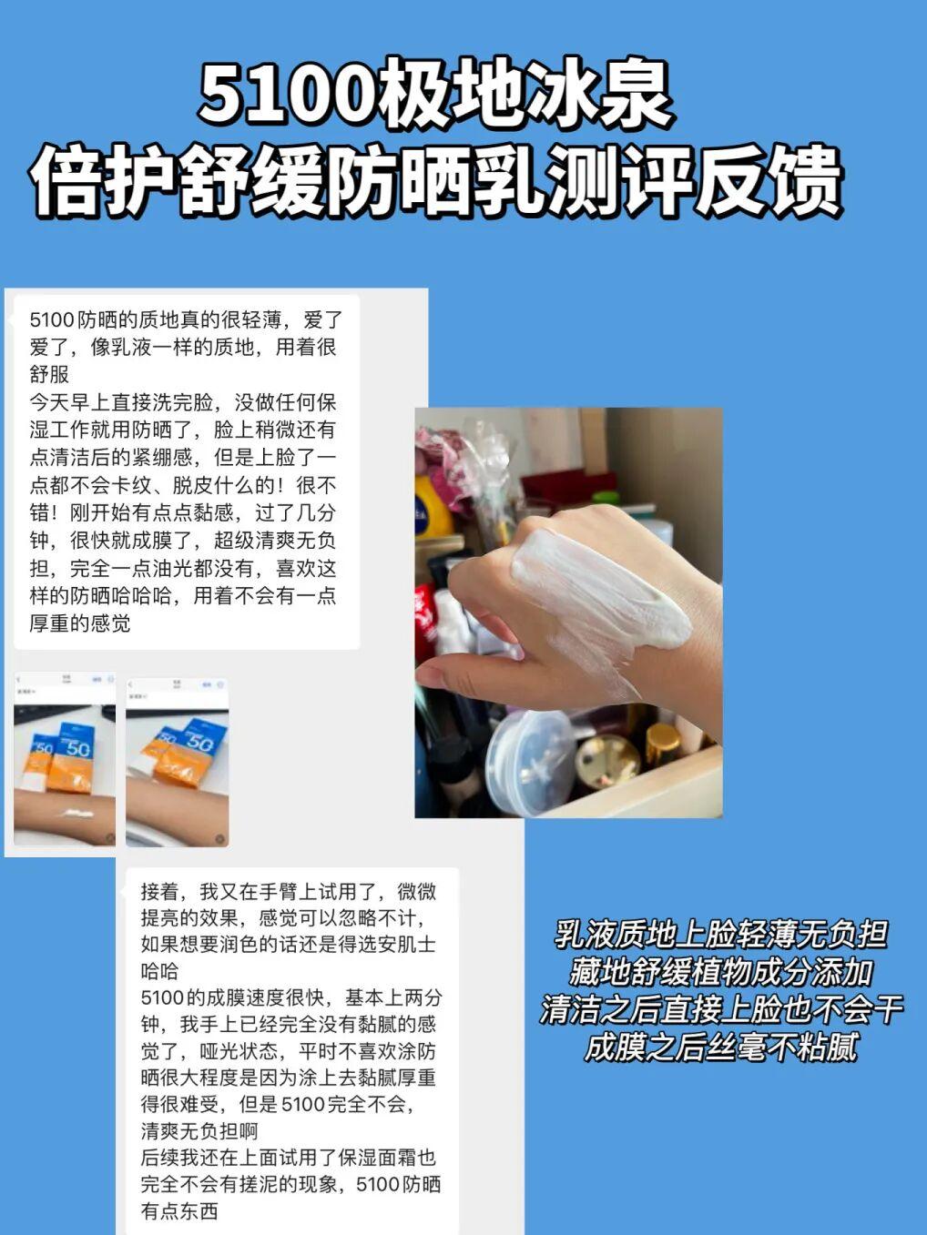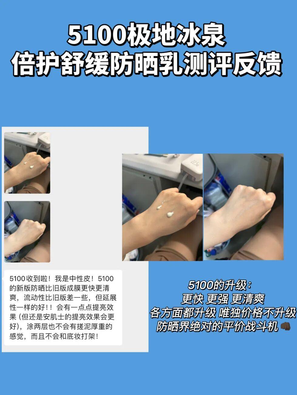 5100極地冰泉防曬乳則主打【防曬養膚二合一】。