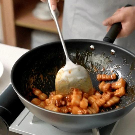 而且,它也太嬌氣了。火不能開太大,鐵鏟不能用,鋼絲球是禁忌,連炒個小龍蝦、花甲等硬殼菜都怕把塗層刮花了。要是不好好保養,幾個月下來就報廢。