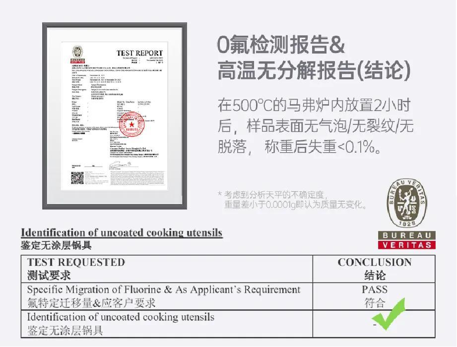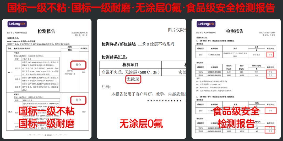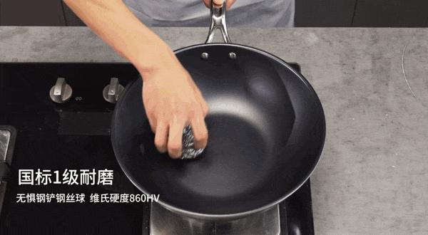 ② 達到國標1級不粘水平和耐磨標準,鋼鏟、鋼絲球都可以用,比塗層鍋更健康、耐磨;