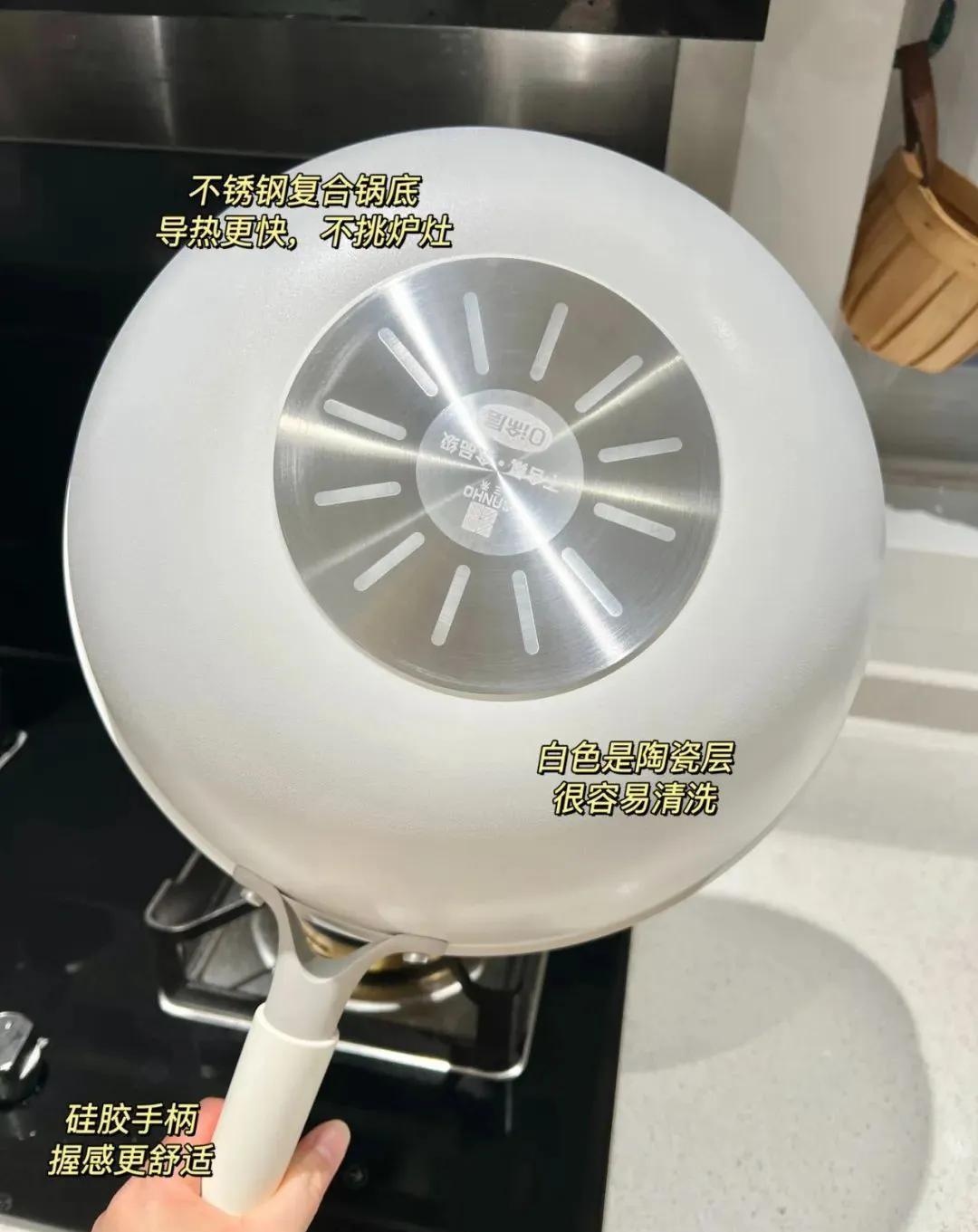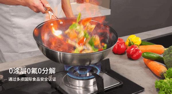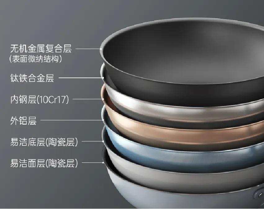 這個炒 鍋用的都是“鈦鐵合金”複合材料,具有強度高、生物安全性、易清潔性、抗菌性和輕量化的特點。