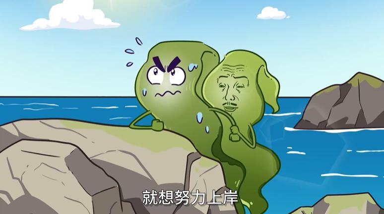 看着躺平的海帶片,海帶結在旁邊着急,乾脆自己上。