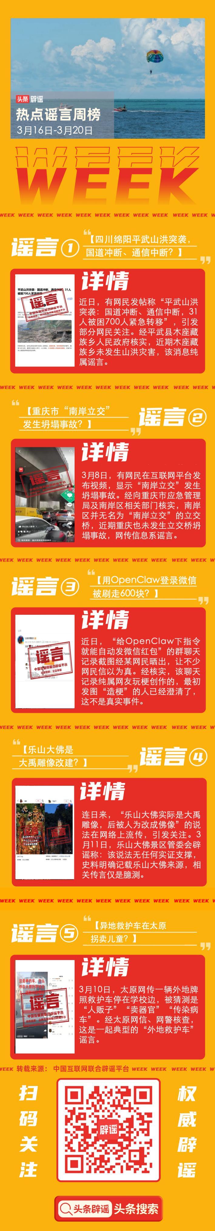 頭條闢謠發佈熱點謠言周榜,綜合一週權威熱點闢謠信息、還原真相。
