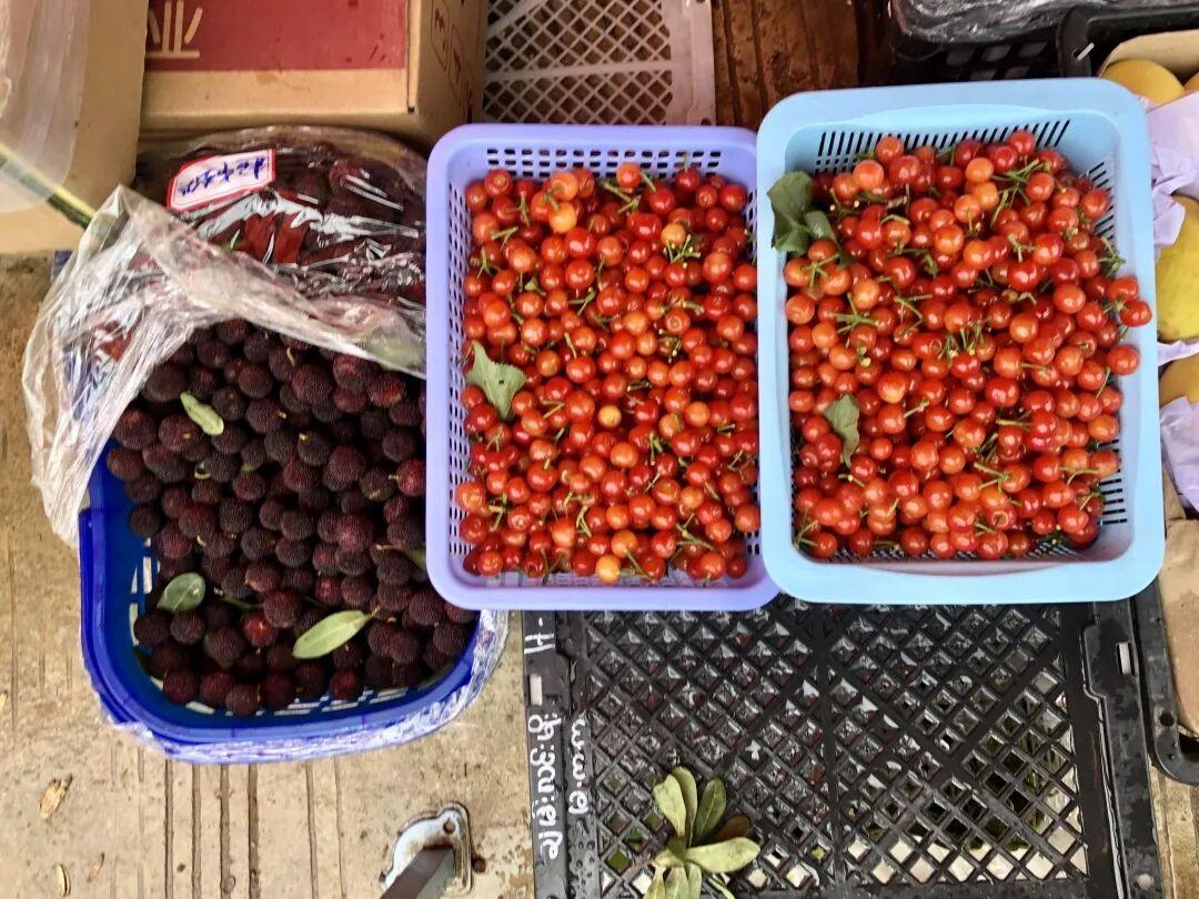 每到三月下旬,櫻桃和楊梅總會相繼出現,不久後桑葚也會加入它們,形成菜場三寶,它們常被放在小籃子裏一起出現。