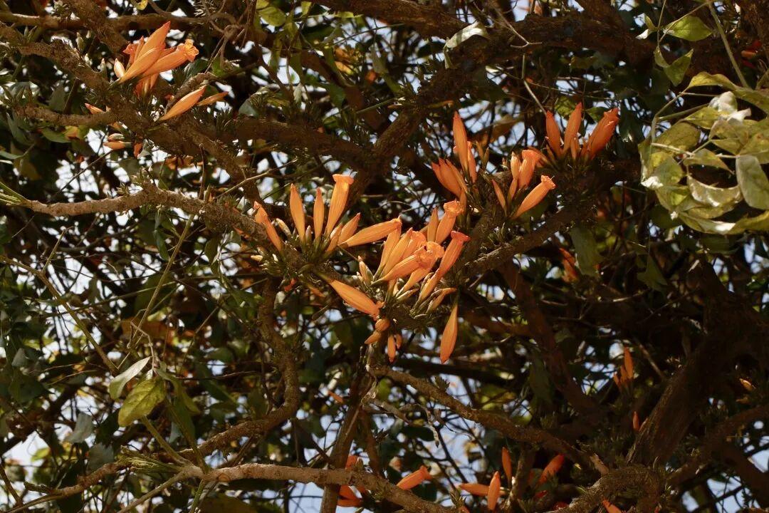 火燒花 Mayodendron igneum,紫葳(wēi)科的常綠喬木,它的花朵需要複雜的處理後纔可食用。