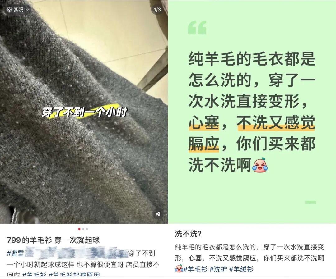 小某書上被網友吐槽的羊毛內衣質量