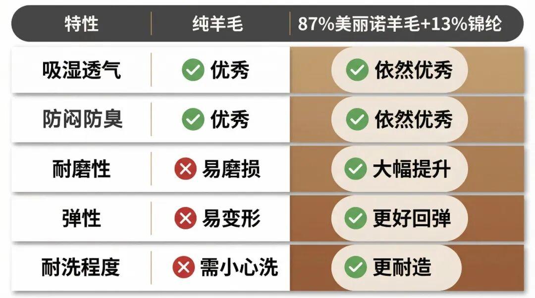 一句話總結:保留了羊毛的天然舒適感,同時變得更耐穿。
