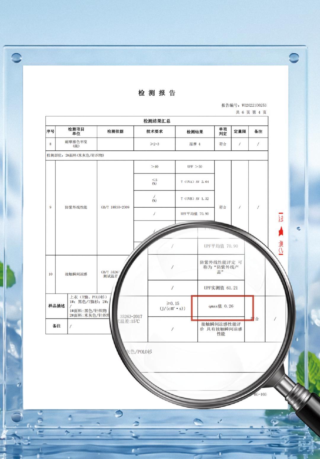 涼感qmax值高達0.26,遠超0.15的國標基準線。